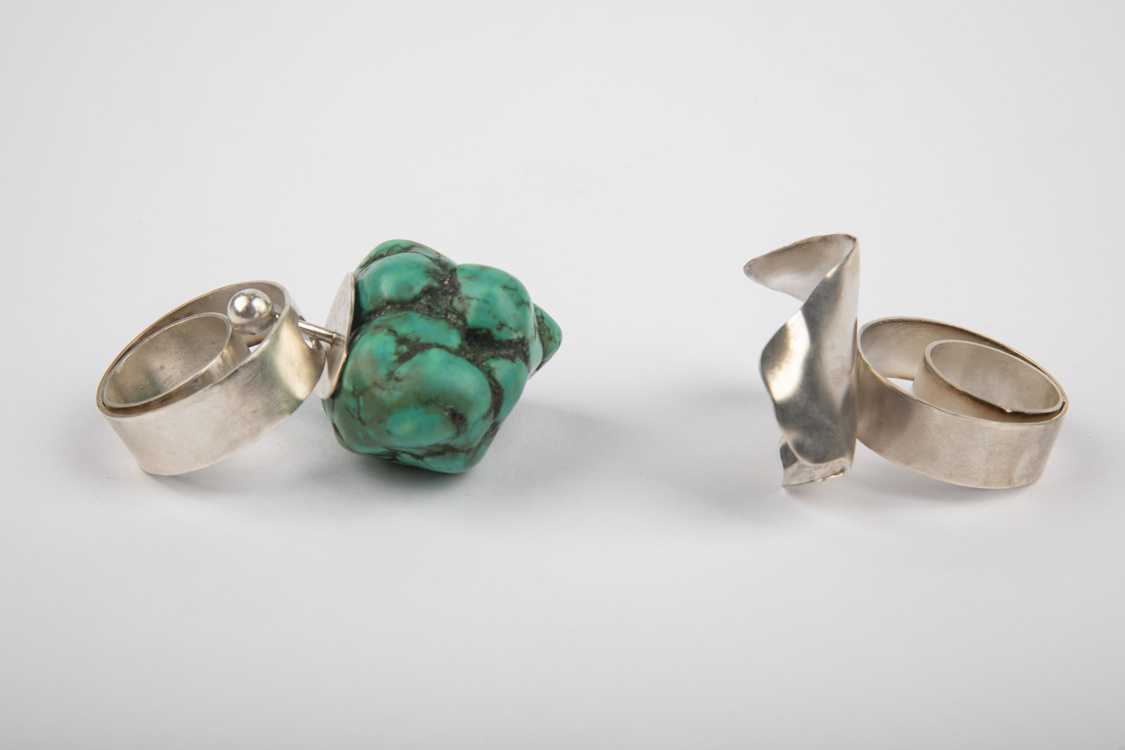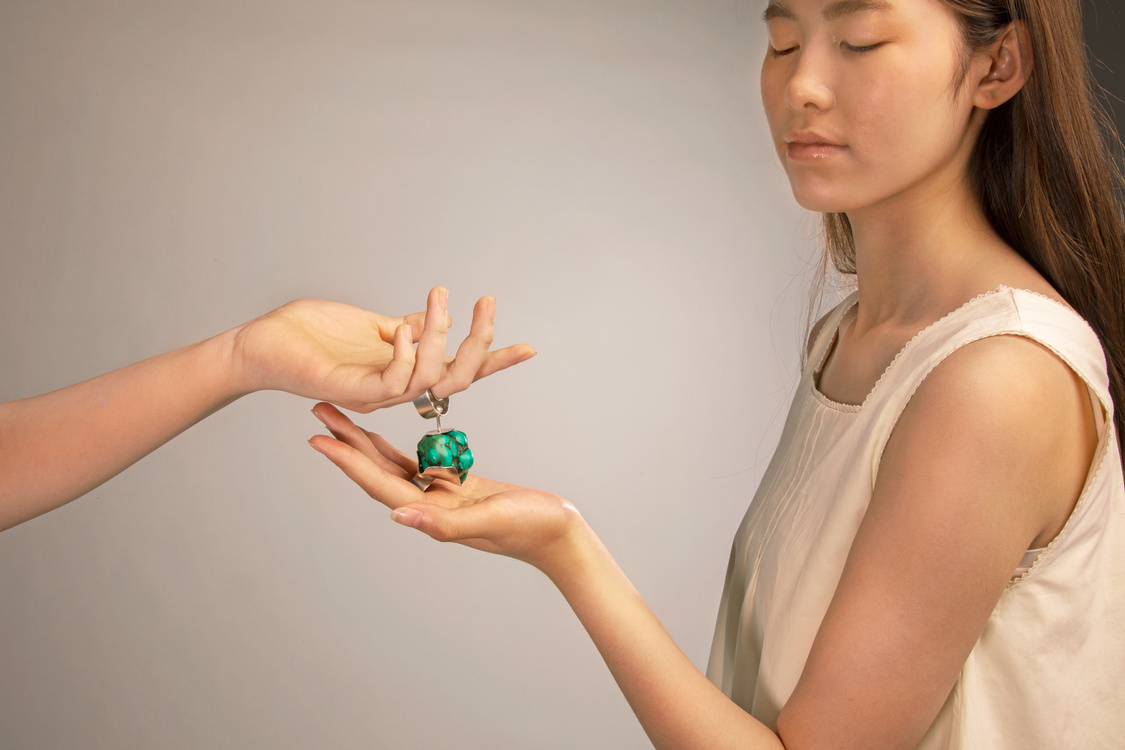 The collection "By Your Side" depicts the intimate connection between my sister and me. Each piece of jewellery can be worn by both of us, representing our close interaction, my sister's protection and care for me, and my willingness to share her responsibilities from family. I portray pressure on my sister through the texture and weight of metal and gemstones. Express my emotions through soft materials and colors as a contrast, and transform the interactions between us from our daily lives, such as holding hands and whispering, into the design of the jewellery's wearability.