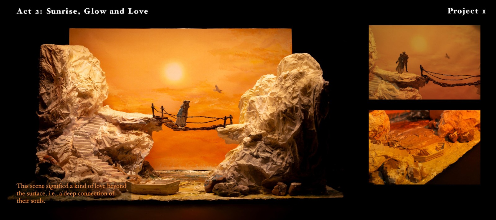 I chose theatre design as my major with my great passion for both performance and painting. Also, I was deeply inspired by my experience of arranging a stage play at an art festival in my secondary school, which greatly encouraged me to express my vision through theatrical scenes. I soon realized that stage plays a prominent role in a play, as it helps to establish the background, emotions, and feelings that comprise the entire story.