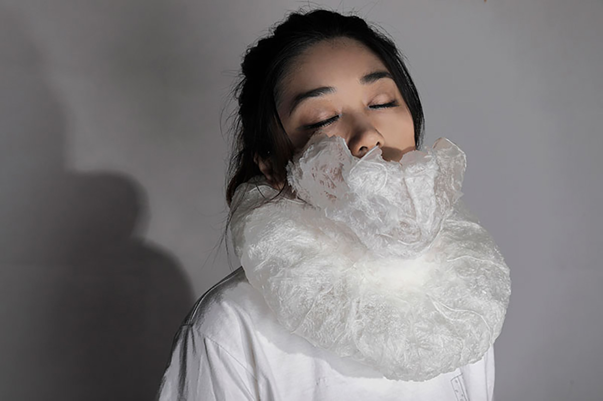 作者的靈感來(lái)源于新冠病毒居家隔離,她在家與家人的相處中得到很多啟發(fā)。她通過(guò)閱讀一些文獻(xiàn)得到了更多的感觸,在材料實(shí)驗(yàn)中也有了新的感悟。她希望用首飾的形式把自身得到的啟發(fā)和感悟傳達(dá)給更多的人。
