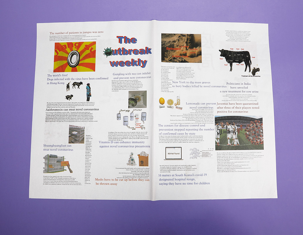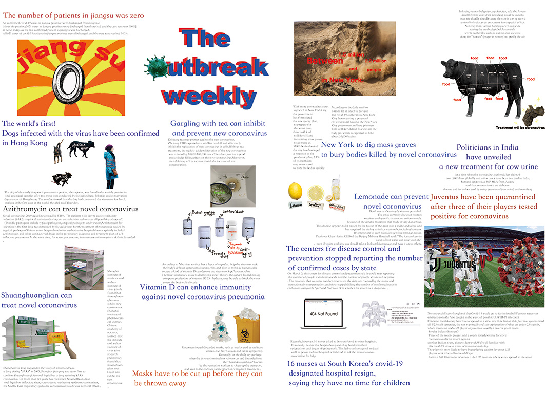 最后一個作品《Unreachable》。它表達的是現在人們對于疫情期間謠言的信服性。陳亭羽用疫情周報很好的嘲諷了人們輕易相信謠言的現象。她明白作品就像是她的嘴巴或者手,為她敘述了心里的思想。她希望自己的作品可以簡單明了的讓人們明白其中的奧妙。在作品《洞穴中的囚犯》中,非常深刻的大道理,變成了讓人們一眼就能看懂的圖畫書。柏拉圖那些復雜的學說好像也不那么難懂了。