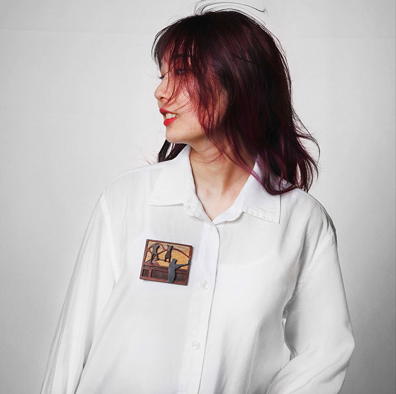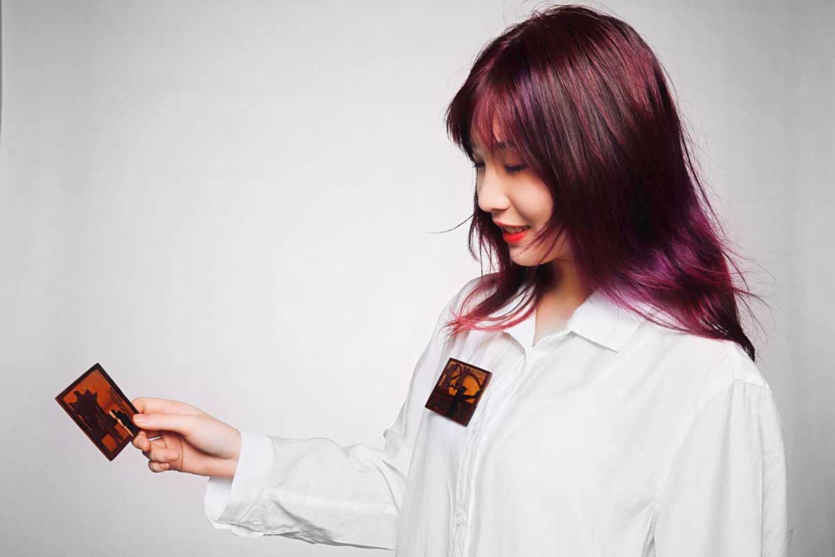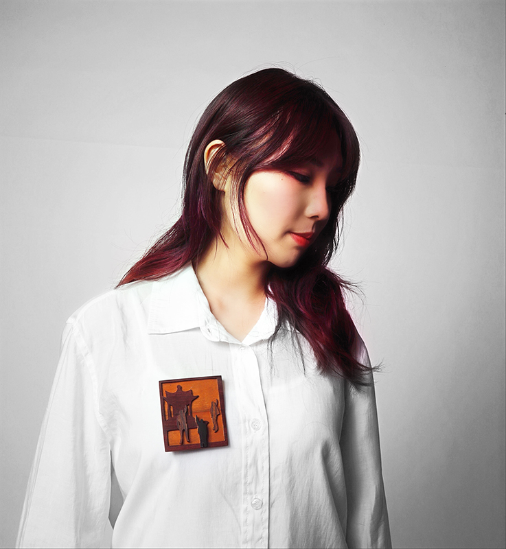 In Yunqi Ma's brooch series <Family>, she used the wood which is also the container of her childhood memory as the material to make up for the regrets of taking no family photos in the trip. She tried to use this collection to make up for the lack of emotions in the travel.