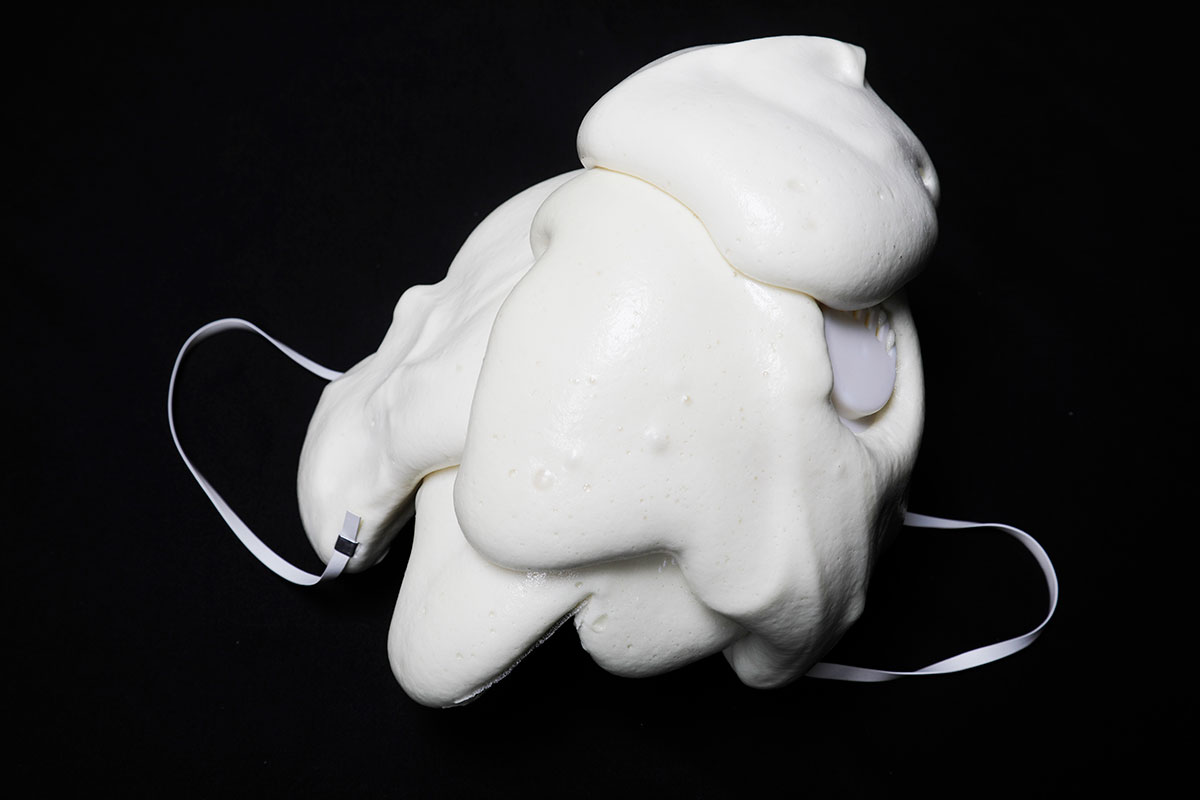 我的藝術(shù)實踐是在使用視覺語言來討論一些社會現(xiàn)象或探索。比如在最近的作品《價格》中,討論了疫情期間畸形的不受控制的防疫用品漲價現(xiàn)象。通過夸張的藝術(shù)手法來凸顯這些產(chǎn)品的暴力溢價。材料上也基于這個觀點,使用了多種低密度與可膨脹性的泡沫作為材料;并通過染色、發(fā)泡、定型、固化等方式使其與防疫用品結(jié)合,來得到預(yù)期的視覺效果。