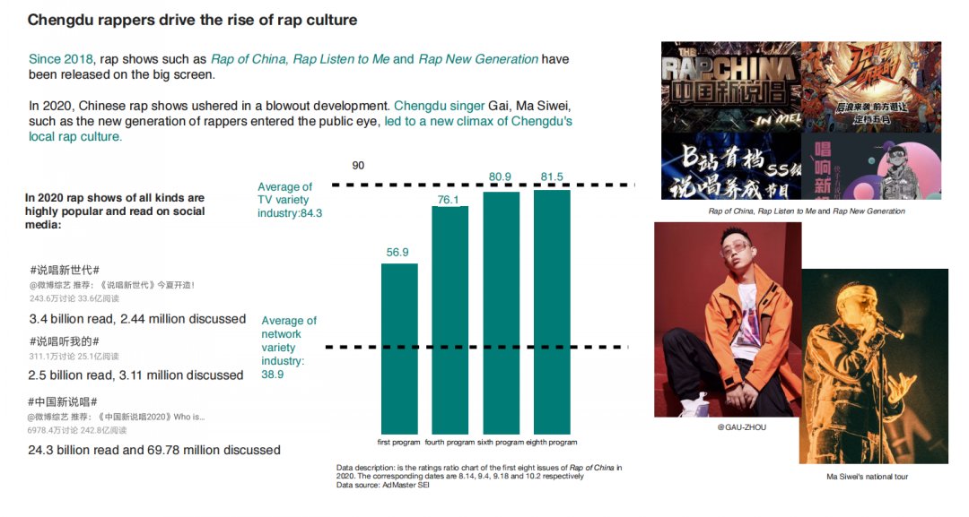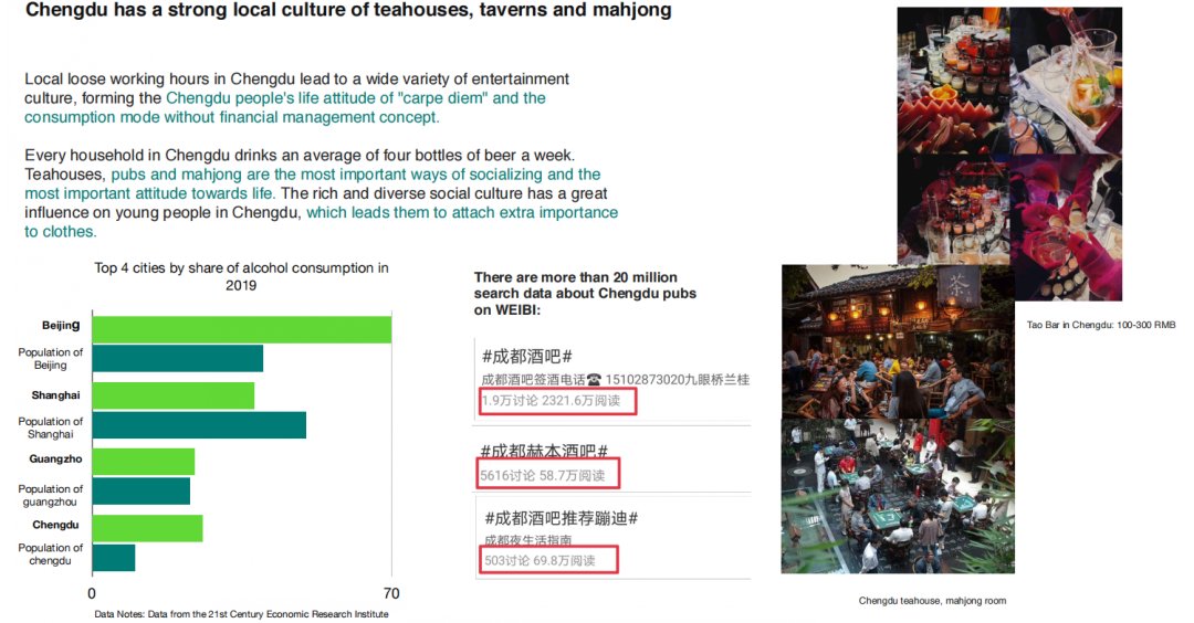 我的第三個項目靈感來源于《2018中國城市時尚指數報告》中成都被評為與上海齊名的“中國時尚一線城市”的報告內容。所以我試圖在我的項目中探討研究成都成為中國潮流標簽的原因。從成都的基本地域情況,人民的作息習性、消費觀價值觀,以及成都潮牌文化的發展去分析研究成因。為此,我進入上海時裝周實習了兩周的時間,研究成都服裝零售市場的市場推動因素是什么?成都電子商貿業務興旺的原因?成都市場如何劃分的更細致了以及成都多品牌營運的方式?最后,我從發展和趨勢兩方面總結了成都潮流市場的未來走向。