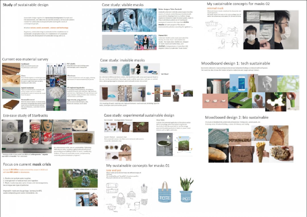 As a future product designer, my understanding of this major is how creating a good product can use much more conveniently and shows respect for a good design. At the same time, I think we should consider the material cost much more carefully. I hope to use it to produce better works with the least consumption, and to provide clear comprehension. For example, "Protective clothing using method and design improvement " is about some design improvements to epidemic protective clothing. The complex wearing process of protective clothing needs to be simplified. And then the different sizes and basic functions are not fully utilized, so I propose new ideas for these existing problems. Including improving its environmental protection, preparing more easily adjustable design for people of different physiques, or adding reflective strips for takeaway deliverymen and police officers who work at night.
