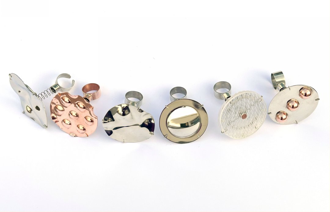 I am obsessed with metal materials and enjoy the process of working with metal to explore its possibilities. Life has always provided me with many inspirations, and the Addiction series was born from my observation of people's daily use of electronic devices. I incorporate optical illusions such as moiré patterns into my work. The visual discomfort occurred when the ring shook while the wearer swipes the screen with their thumb. This interaction allows the wearer to reflect on their over-reliance on cell phones.