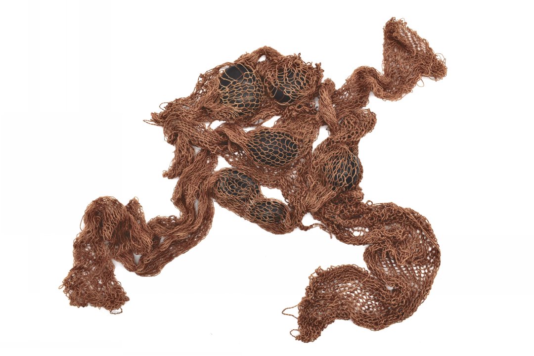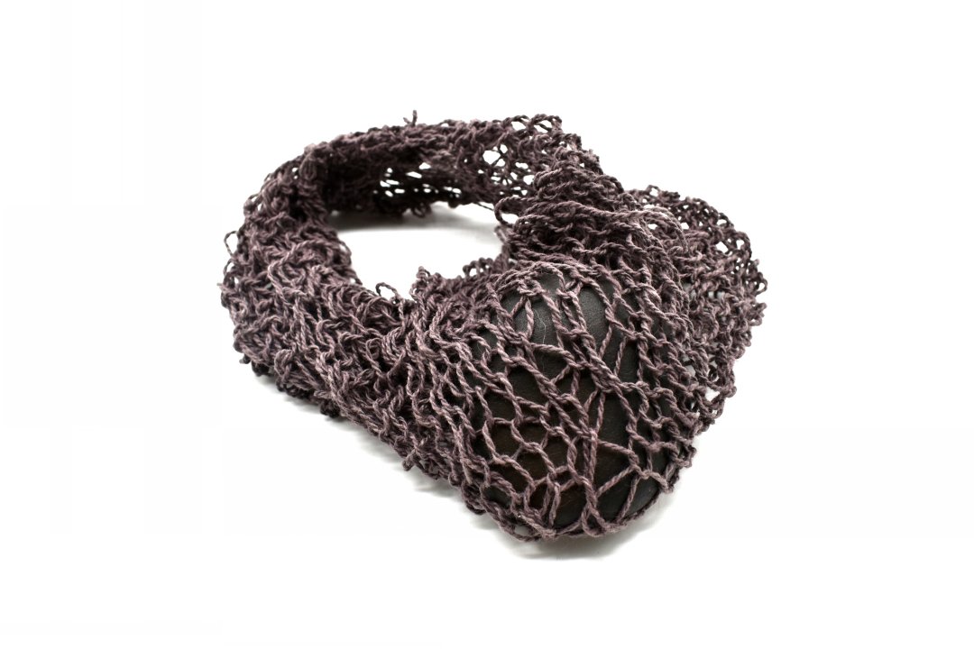 Stand in the running water IV Necklace Agate Stone, Cotton Thread, Plant Pigments 46*19cm 定 IV 項鏈,瑪瑙原石,棉繩,植物色素 尺寸:46*19厘米