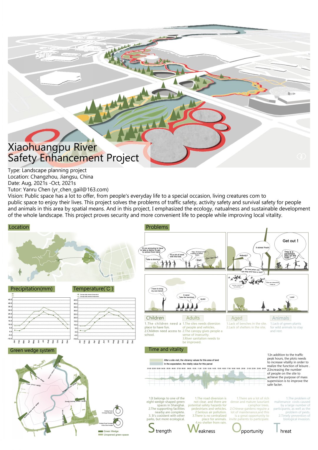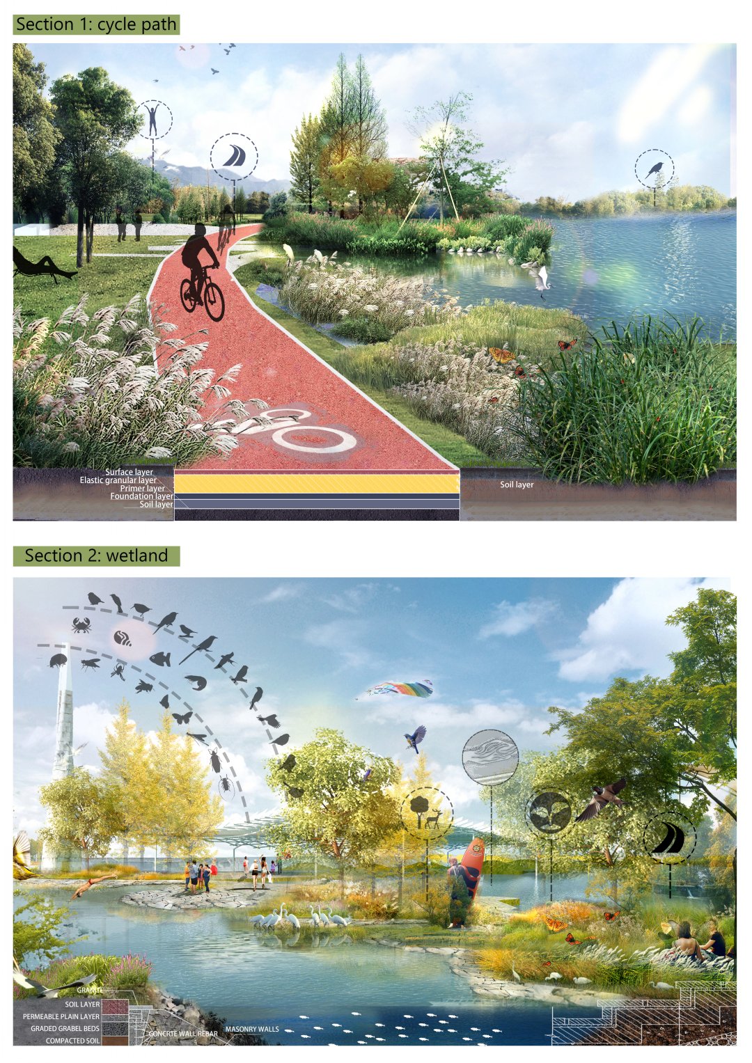 My name is Wang Xinchen. I am a graduate of architecture. During my internship from Yangzhou, Jiangsu to Beijing, from south to north, I found that the landscape and ecological environment in many areas need to be improved and optimized, so my works are mainly landscape architecture works. I like to integrate modern scientific and technological means with the most primitive natural laws to make the environment more original, more livable, more inclusive, and more able to take care of people of different ages and animals living in different seasons. The project solves the problems of traffic safety, activity safety and survival safety of people and wildlife in this area through space means. This project emphasizes the self-healing of the environment in the whole landscape, the harmonious coexistence between man and nature, the safe social interaction between people, and the implementation of sustainable development. The project not only improves the local vitality, but also provides people with a safer, more convenient and more comfortable life.